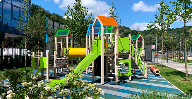 Мы поставляем и устанавливаем безопасное, надежное и современное оборудование для детских игровых и спортивных зон, идеальное для школ и парков.